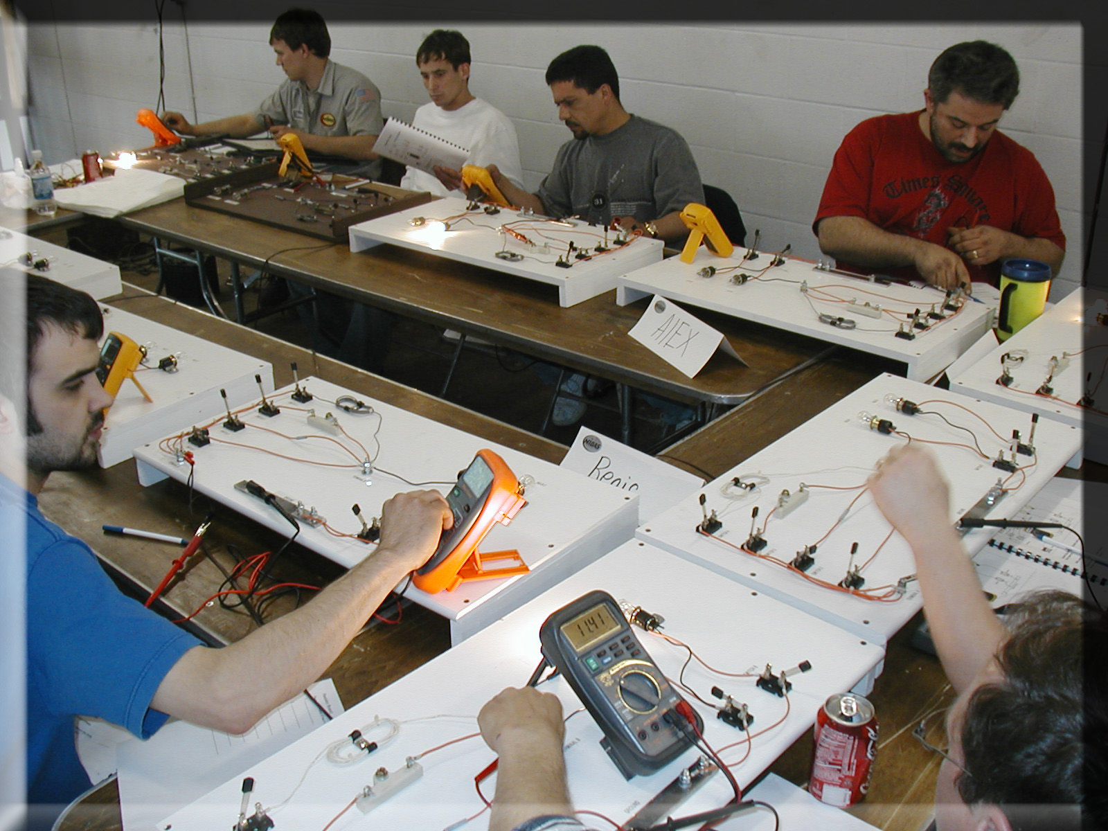 A hands-on class using demonstrator boards in the classroom to explore voltages, amperage, relay operation, series and parallel circuits, DVOM use, and diagnostics.